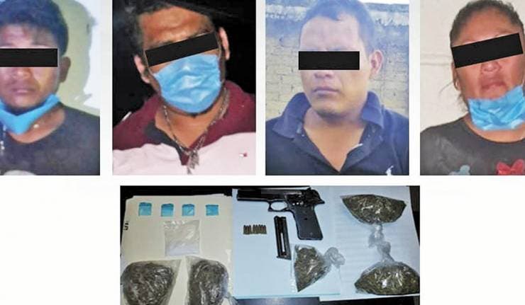 Xoxocotla, MORELOS.- Tras una persecución, tres hombres y una mujer fueron detenidos en posesión de un arma y dosis de droga por elementos de la Policía Morelos la noche de este domingo.