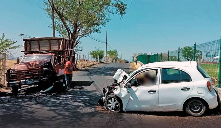 Impacta su March contra camioneta de carga en un intento de rebasar