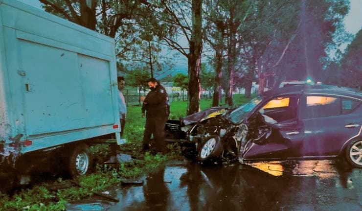 Ocuituco, MORELOS.- Un hombre resultó lesionado, luego de perder el control de su auto debido al pavimento mojado, en la carretera Yecapixtla-Ocuituco, a la altura del kilómetro 11, donde terminó impactado contra un camión.