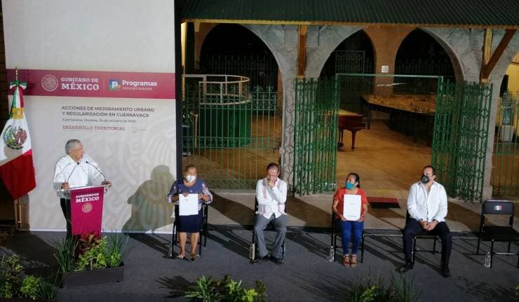 El pasado mes de junio, el Presidente Municipal de Cuernavaca, Antonio Villalobos Adán, presentó la petición al Jefe del Ejecutivo Federal, Andrés Manuel López Obrador para obtener su apoyo en la regularización de la tenencia de la tierra de los predios de Patios de la Estación.