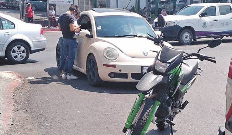Con un brazo lastimado acabó el conductor de una moto Italika verde, tras chocar contra un auto Volkswagen-Beetle, color beige, cuando circulaban por la avenida Plan de Ayala, a la altura del hospital del IMSS, en Cuernavaca, por lo que fue atendido por paramédicos del ERUM, pero a pesar de sus heridas no quiso ser trasladado a un hospital.