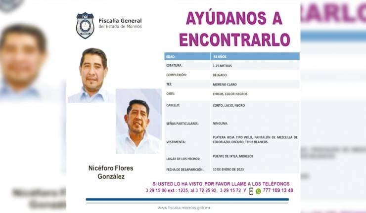 Puente de Ixtla, MORELOS.- Un regidor de Puente de Ixtla y un ex ayudante municipal de la colonia Emiliano Zapata fueron reportados como desaparecidos desde la tarde del martes, por lo que autoridades ya difundieron sus fichas de búsqueda.