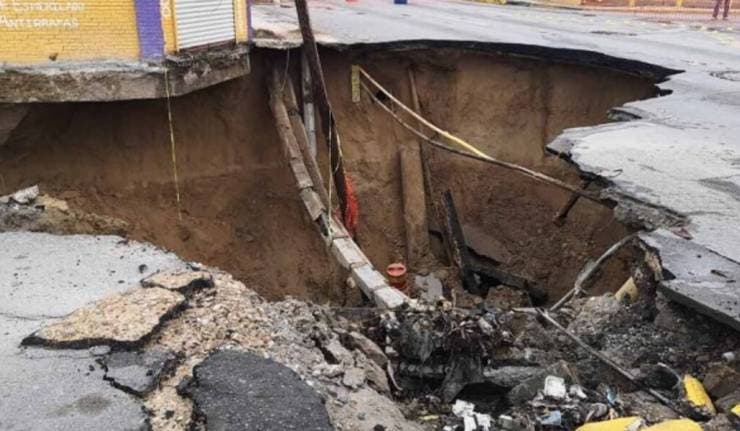 Aparece socavón en Acapantzingo, Cuernavaca, debido a la rotura de drenaje