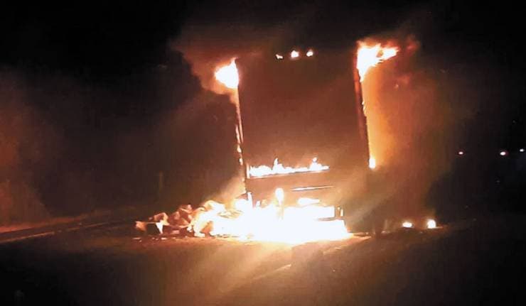 Arde camión de cerveza en La Pera-Cuautla