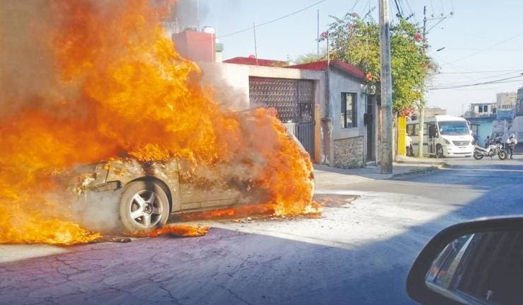 Pierden patrimonio al incendiarse su auto en Av. Universidad
