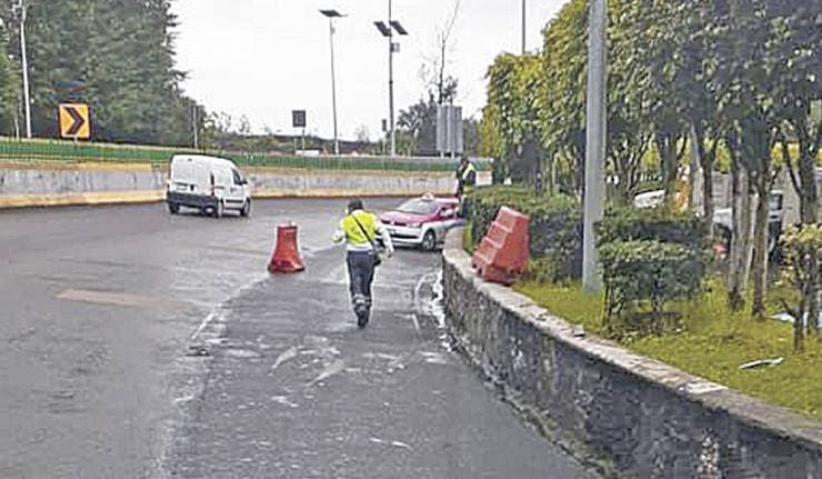 A punto de explotar estuvo un taxi de la Ciudad de México abastecido con gas, tras impactarse contra el muro central de la autopista México-Cuernavaca, a la altura de la curva de La Pera, en Tepoztlán, luego de que el chofer perdiera el control debido al piso mojado.
