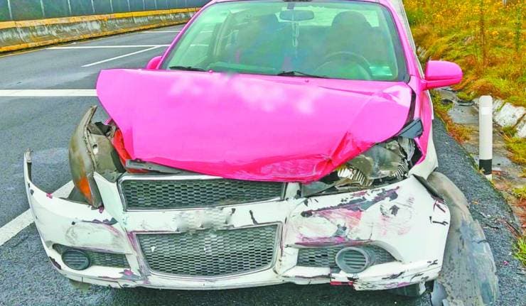 Dos hombres acabaron golpeados, tras destrozar un taxi de la Ciudad de México al chocar contra un muro de contención, luego de que el conductor perdiera el control al patinar su auto cuando salía de una curva en la autopista México-Cuernavaca, a la altura del poblado de Tres Marías, en Huitzilac.