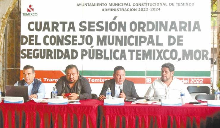 El síndico municipal del ayuntamiento de Temixco Andrés Duque Tinoco, el secretario del municipio Carlos Caltenco y el secretario Ejecutivo, Administrativo y de Protección Ciudadana, capitán Rubén Sánchez encabezaron la cuarta sesión ordinaria del Consejo municipal de Seguridad Pública en Temixco.