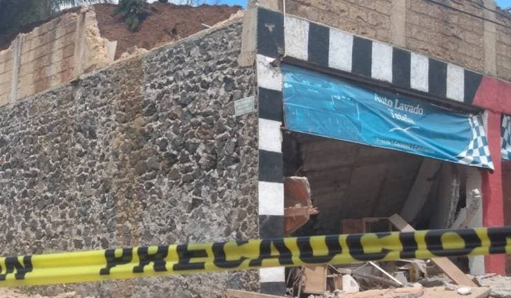 Autolavado destruido tras caerle bloque de tierra, en Cuernavaca