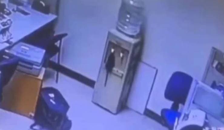 VIDEO: Rata bebe agua directo del dispensador de garrafón en una oficina