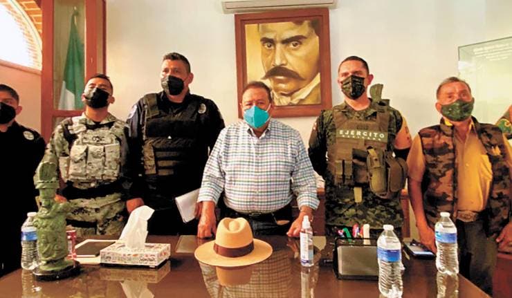 Yautepec.- Con el objetivo de coordinar acciones para desinhibir la incidencia delictiva en el municipio, el presidente municipal de Yautepec se reunió el día de ayer con Edmundo Román Núñez Comandante del Quinto Regimiento Mecanizado de la SEDENA, Víctor Vicente Calderón Comandante de la Guardia Nacional en la zona, David Cruz Bautista Comisionado de la CES en el municipio y el Secretario Municipal de Seguridad Pública y Tránsito Abiram Campuzano González.