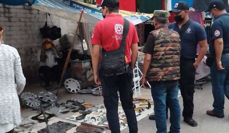 Integrantes del Comité de Contingencias Sanitarias y Emergencias de Yautepec, acompañados del regidor Sergio Vences Avilés y de personal de Protección Civil del Estado, realizaron un operativo para fortalecer las medidas sanitarias en el tianguis de la colonia La Huizachera, el más grande del municipio.