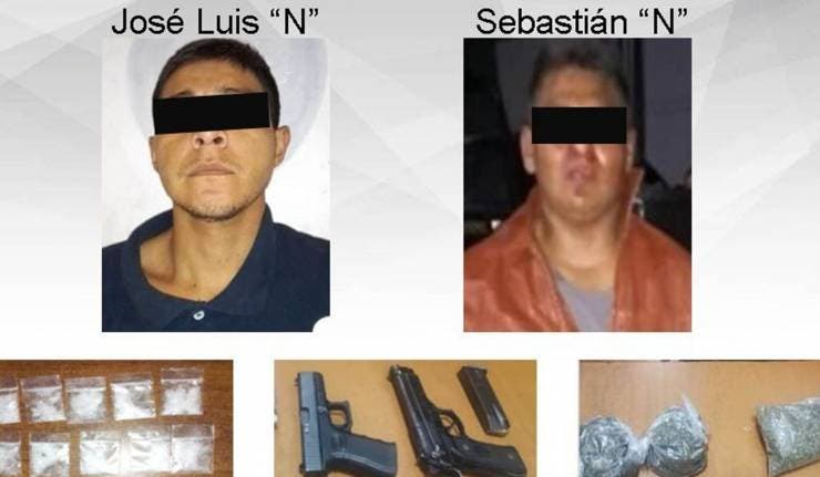 Elementos del Mando Coordinado Policía Morelos detuvieron a dos hombres en la colonia San Juanito del municipio de Yautepec.