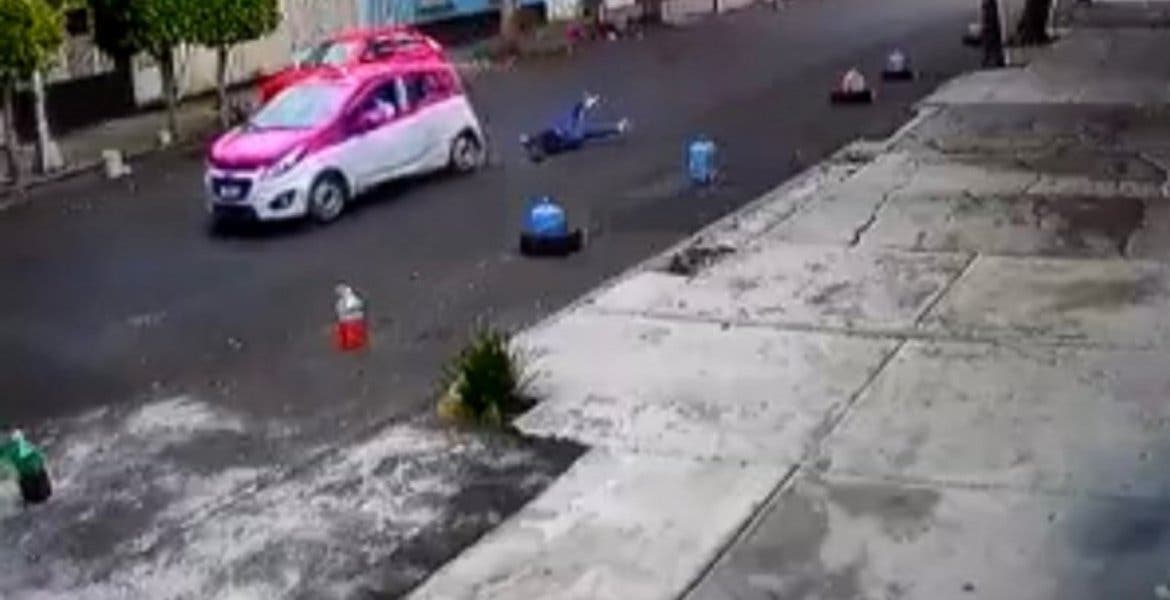 Circula de manera viral en redes sociales el video de un taxi de la CDMX que arrastra por varios metros a una mujer entre la carrocería y las llantas de la unidad. Afortunadamente, se puede advertir gracias al video que la mujer, luego de zafarse del auto, puede levantarse y animar sin que, aparentemente, le haya pasado algo.