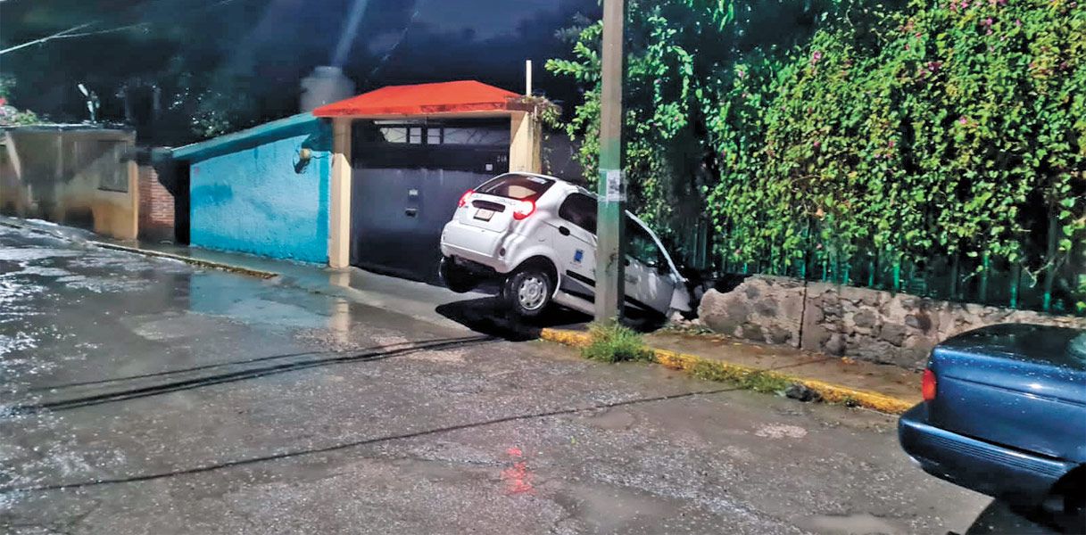 Con algunos golpes leves resultó un taxista tras chocar su taxi Matiz contra la barda de un domicilio en la colonia Progreso, de Jiutepec. Al ser auxiliado, el chofer comentó que circulaba por la pendiente de la calle Álvaro Obregón donde le fallaron los frenos y por ello perdió el control y chocó.