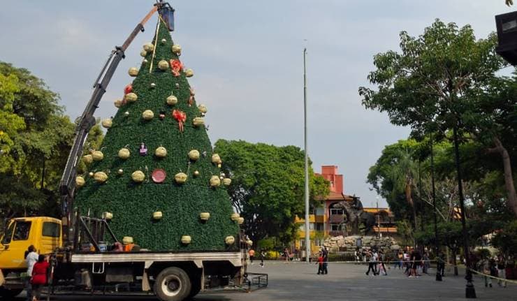 La tarde de este sábado inició la instalación del árbol de Navidad en la Plaza de Armas Emiliano Zapata, en el centro de Cuernavaca, el cual se distinguirá por incorporar elementos representativos de la identidad cultural de Morelos.