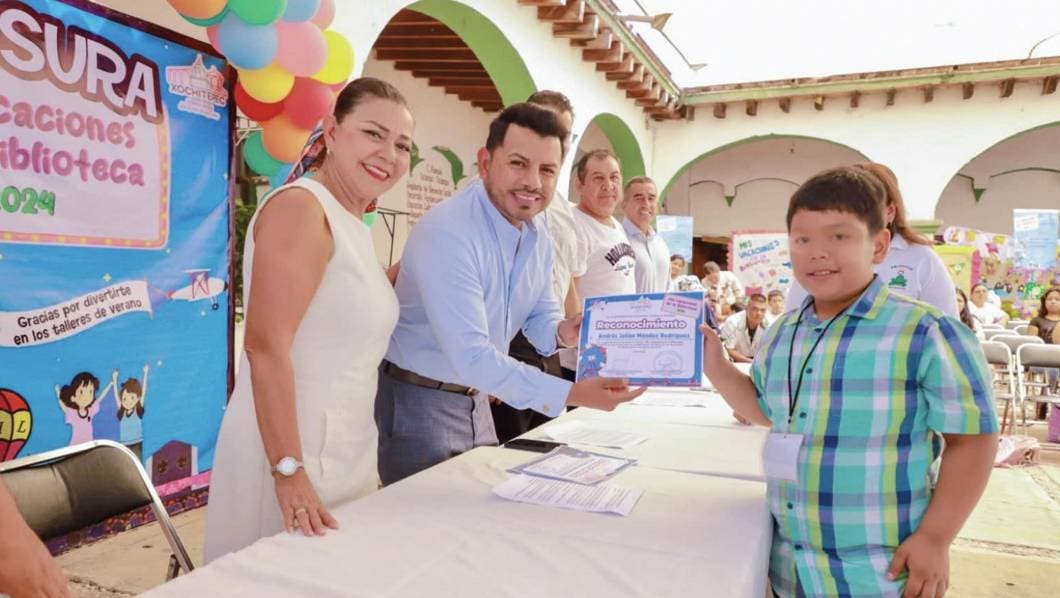 Más de 300 menores concluyeron el Curso de Verano “Mis Vacaciones en la Biblioteca”, quienes recibieron reconocimientos y aguinaldos de dulces en el Centro Cultural Xochitepequense.
