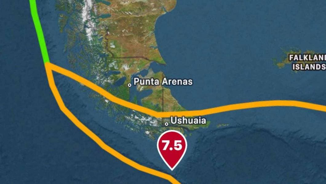 Magallanes, Chile.– Un potente sismo de magnitud 7.5 sacudió este viernes las costas del sur de Chile y Argentina, generando alarma en la región de Magallanes y el Territorio Antártico Chileno. El movimiento telúrico fue registrado por el Servicio Geológico de Estados Unidos (USGS) con una profundidad de apenas 10 kilómetros, lo que intensificó su percepción.