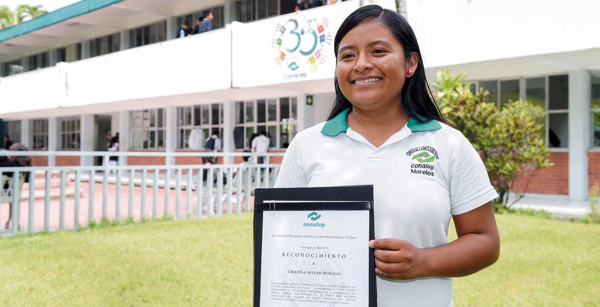 CUERNAVACA, MORELOS.- Ella es Cristina Alvear Morales, tiene 17 años, es originaria de la comunidad indígena de Cuentepec, municipio de Temixco y es ganadora del Segundo Concurso de Ensayo de Alumnos de Origen Indígena, que el Sistema Conalep organiza a nivel nacional.