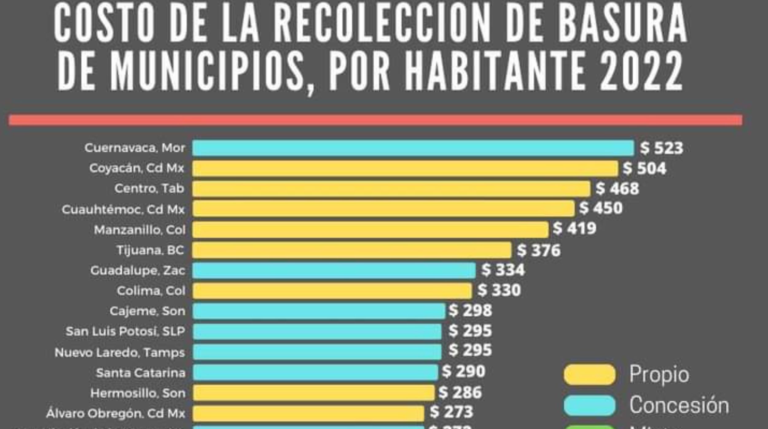 El Ayuntamiento de Cuernavaca es uno de los 19 que tienen concesionado el servicio de recolección; 27 lo operan de forma directa y tres tienen un modelo mixto, entre estos Puebla, donde el costo por ciudadano fue de $210.