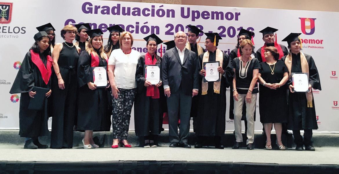 Con la presencia del Gobernador Graco Ramírez; la presidenta del DIF estatal, Elena Cepeda; y la secretaria de educación, Beatriz Ramírez; se llevó a cabo la ceremonia oficial en el Centro de Congresos y Convenciones, donde la rectora de la universidad, Mireya Gally Jordá, destacó la inversión y resultados que está generando la Upemor.