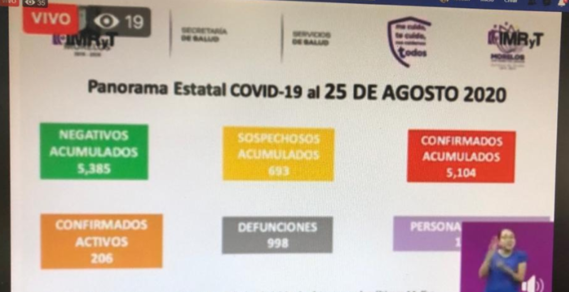 Esta tarde se presentaron nuevas cifras por la pandemia de COVID-19 en Morelos.
