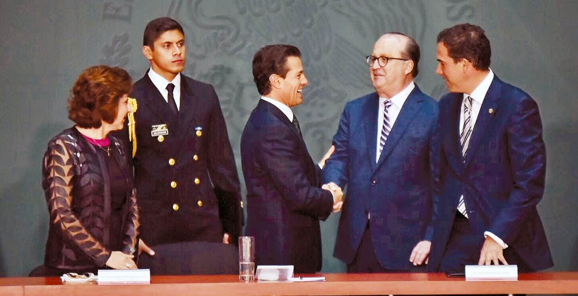 Participación. El Gobernador Graco Ramírez saluda al presidente Enrique Peña Nieto durante el evento "Educación sin Fronteras", realizado ayer en la Ciudad de México.