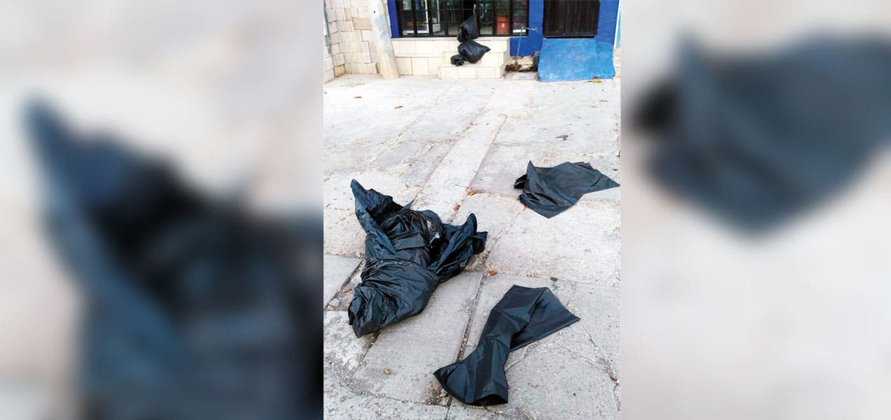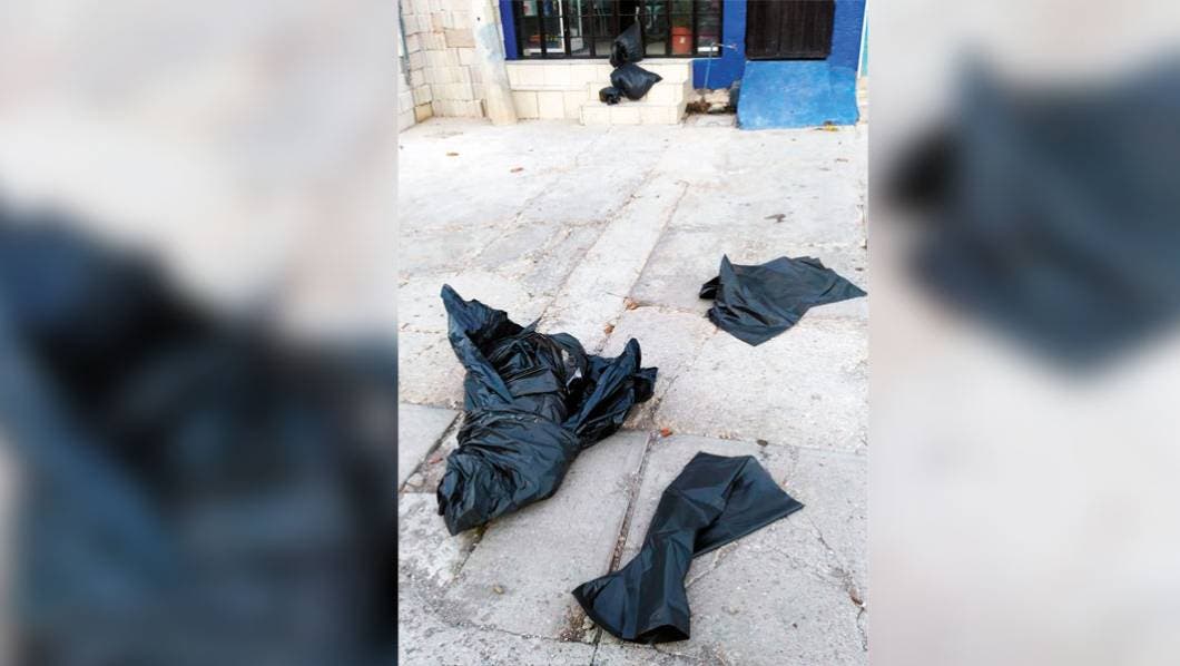 Los hechos se registraron alrededor de las 09:00 horas en la calle 5 de Febrero, a unos metros de la Unidad Deportiva de Nacatongo, donde unas personas hallaron tres bolsas negras que despedían un aroma fétido, justo en las escaleras de un negocio.
