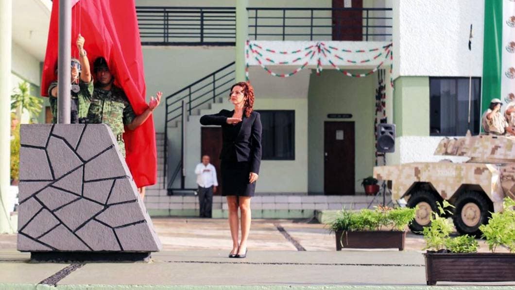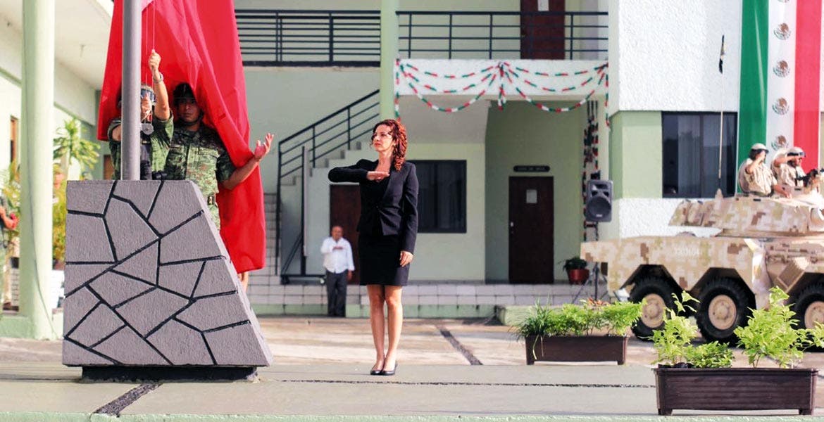 CUERNAVACA, MORELOS.- Como representante del Poder Ejecutivo, este viernes la secretaria de Turismo, Mónica Reyes Fuchs, izó a toda asta la Bandera Nacional en la 24a Zona Militar, y reconoció la importancia del mes patrio y sus festividades como símbolo emblemático de los mexicanos y la lucha constante por la libertad.