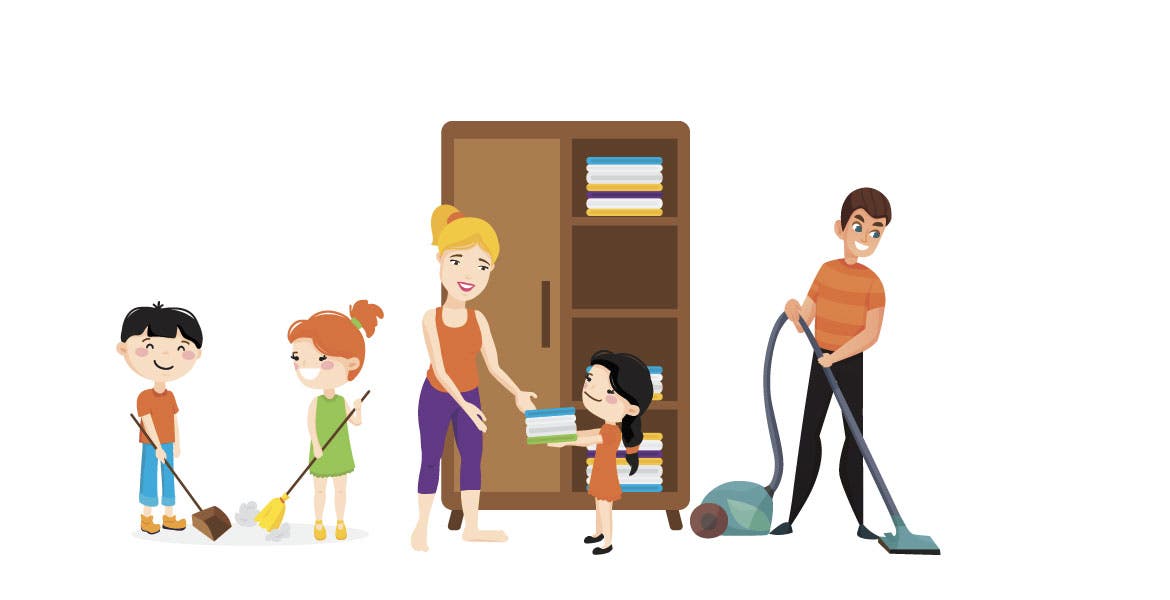 Una vez mi madre enfermó y tuvimos que repartir sus tareas entre nosotros tres. Durante esos días, además, mi padre se encargaba de las cenas, lavaba y planchaba la ropa, y mi hermana y yo limpiamos el cuarto de baño. Acabamos todos cansados y nos dimos cuenta de lo importante que es el trabajo que hacemos cada uno de nosotros y el de hacerlo entre todos. Mis padres nos felicitaron por nuestro esfuerzo, por ser responsables, y por lo bien que nos habíamos organizado. Nos sentimos muy orgullosas.