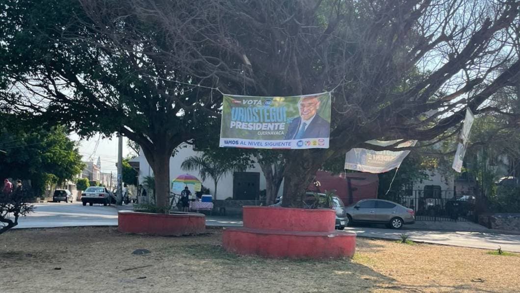 Sin ser sancionado, el alcalde con licencia y candidato a la reelección de Cuernavaca, José Luis Urióstegui Salgado, se pasó por el arco del triunfo los reglamentos sobre publicidad y colocó lonas de su campaña política afectando mobiliario urbano y las áreas verdes de la ciudad.