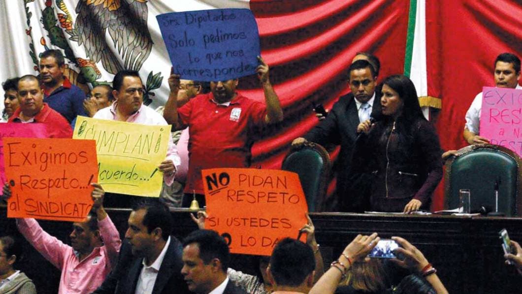 CUERNAVACA, MORELOS.- Después de tomar la tribuna durante el desarrollo de una sesión extraordinario trabajadores sindicalizados lograron que diputados aceptaran el pago de prestaciones de 2016 en esta misma semana.