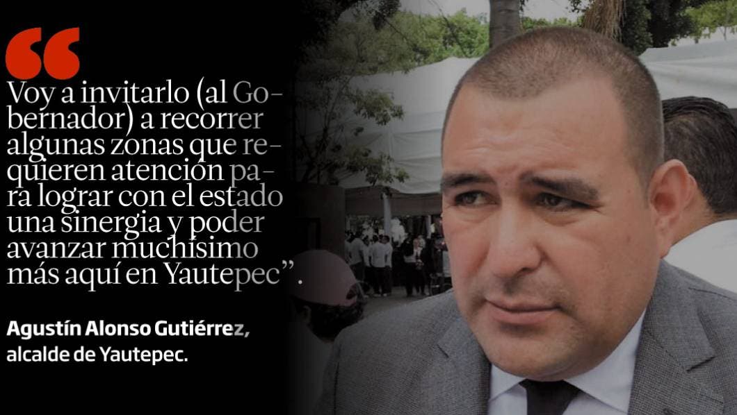 "Voy a invitarlo (al Gobernador) a recorrer algunas zonas que requieren atención para lograr con el estado una sinergia y poder avanzar muchísimo más aquí en Yautepec”. Agustín Alonso Gutiérrez, alcalde de Yautepec.