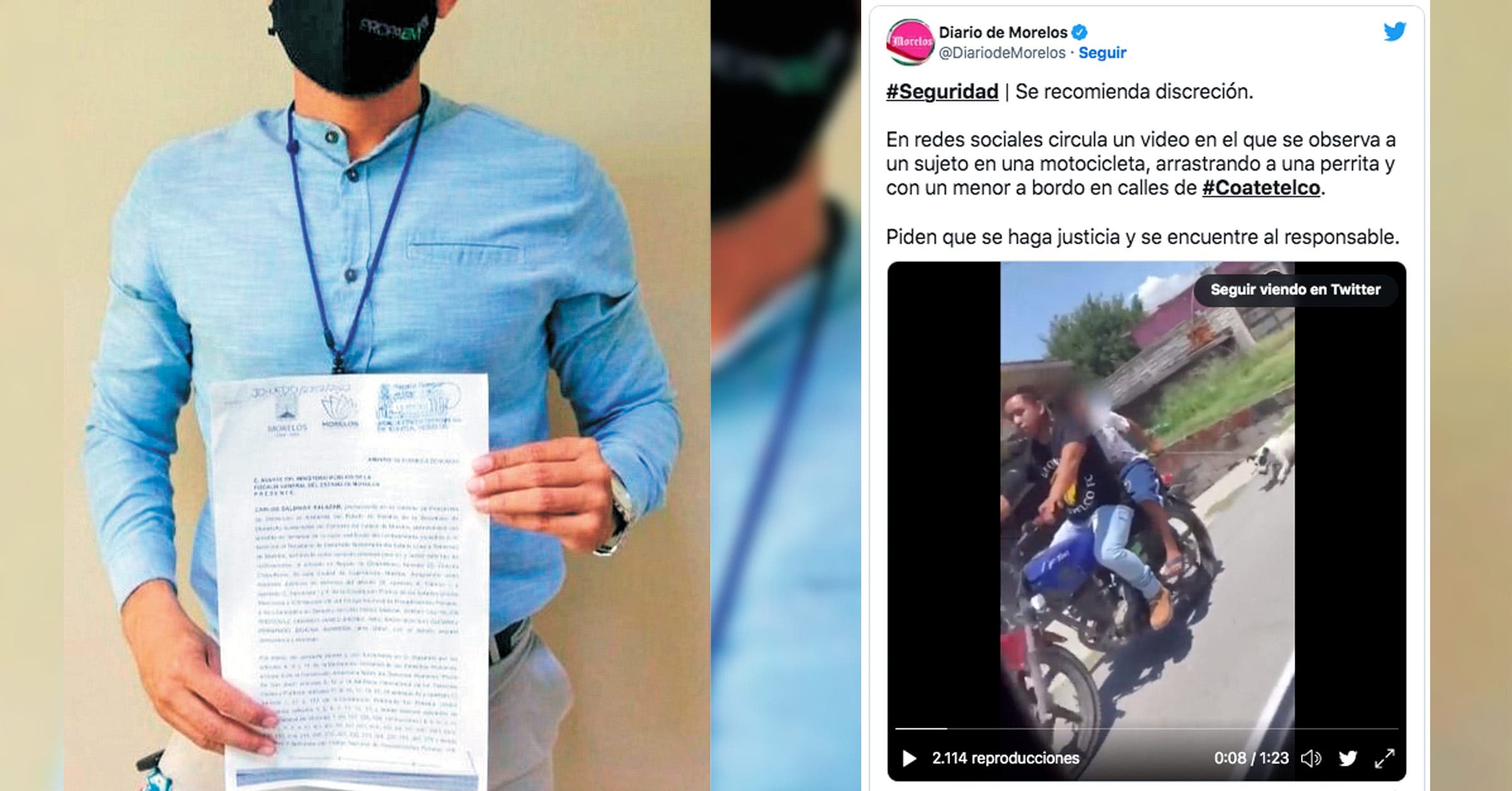 Dijo que se presentaron diversos documentos de prueba y la identidad del posible responsable, conductor del vehículo que fue captado en fotografías y subido a redes sociales denunciando su paradero y posible identificación de quien lo arrastró, amarrado de su motocicleta hasta causarle la muerte.
