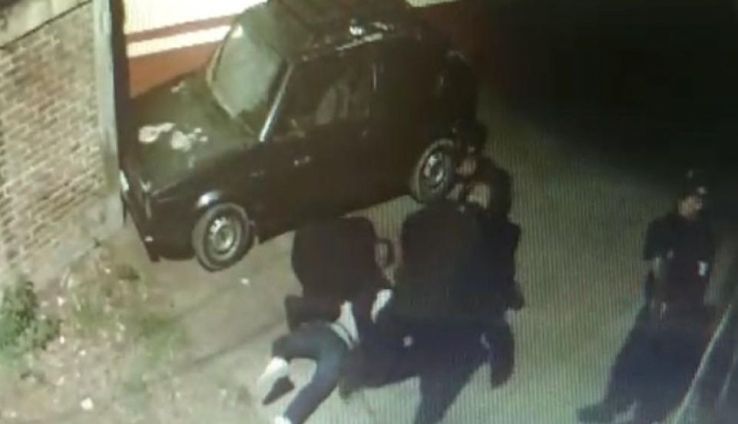 Posteriormente lo subieron a una patrulla, pero supuestamente se aventó y se dio un golpe en la cabeza contra el pavimento.