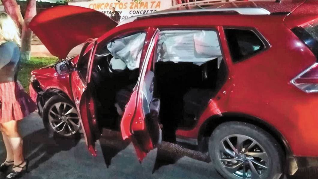 Elementos de Tránsito y paramédicos auxiliaron a la conductora de la camioneta, identificada como Mireya, de aproximadamente 27 años, quien presuntamente tenía aliento alcohólico.