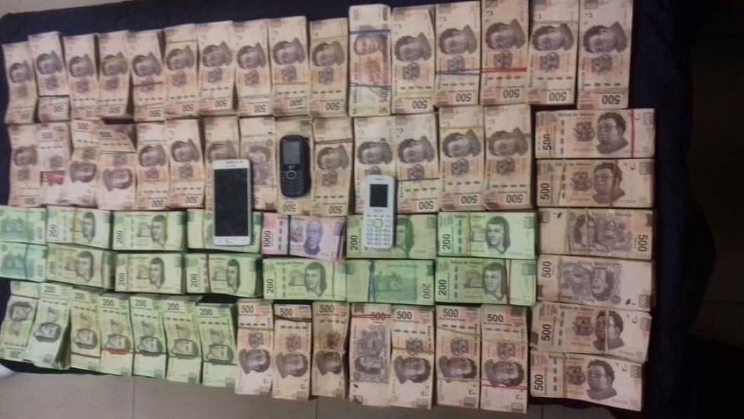 Los elementos de seguridad detuvieron el paso del vehículo y al revisarlo, se encontraron con 2 millones 600 mil pesos en efectivo y tres celulares.