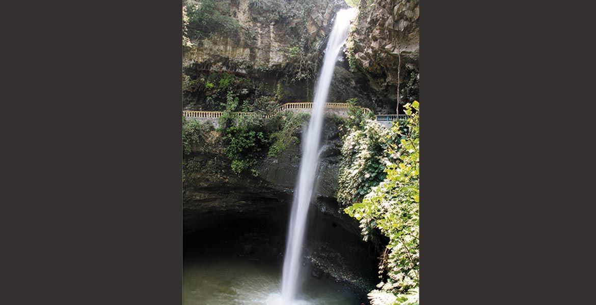 jEn este lugar está una cascada de 40 metros de altura y más de 30 metros de profundidad.