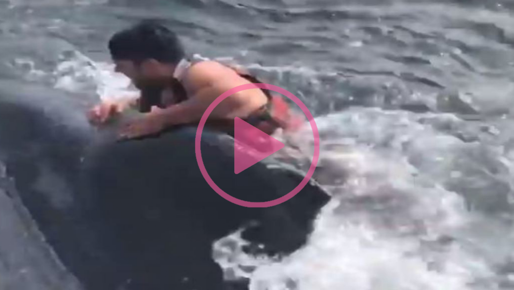 "¡Vamos, ve. Puede morir!", gritó su compañero mientras grababa. Sam se montó en el lomo del gigantesco animal y con hábil movimiento logró cortar una cuerda de la red y la ballena dio un fuerte coletazo para momentos después sumergirse en el fondo del mar.