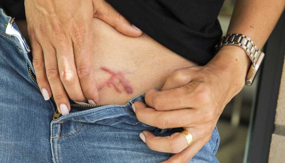 En las imágenes mostradas por un periodista, se puede ver a una mujer recostada mientras se oye cómo pasa por su cuerpo una máquina que graba las letras sobre su piel.