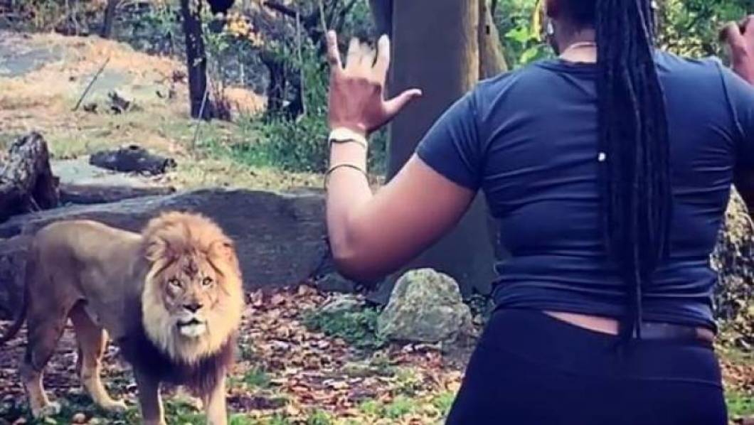 Una mujer brincó a la zona de leones en el zoológico del Bronx, en Estados Unidos, para saludar de cerca a los feroces mamíferos.