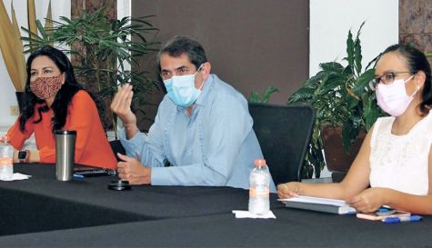 Sectores. El titular de Salud, Marco Cantú; Ana Cecilia Rodríguez, titular de SDEyT, y Cecilia Gómez, subdirectora de Salud Pública, se reunieron con industriales para fortalecer la reactivación económica.