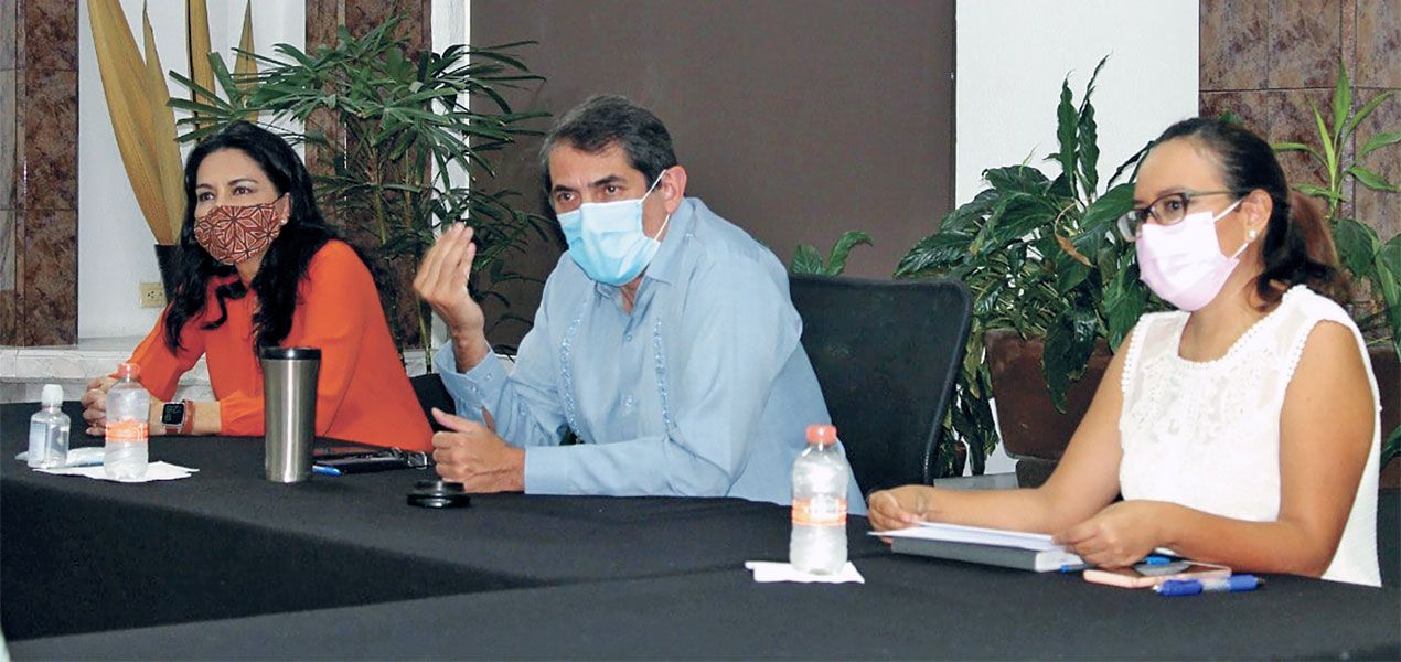 Sectores. El titular de Salud, Marco Cantú; Ana Cecilia Rodríguez, titular de SDEyT, y Cecilia Gómez, subdirectora de Salud Pública, se reunieron con industriales para fortalecer la reactivación económica.