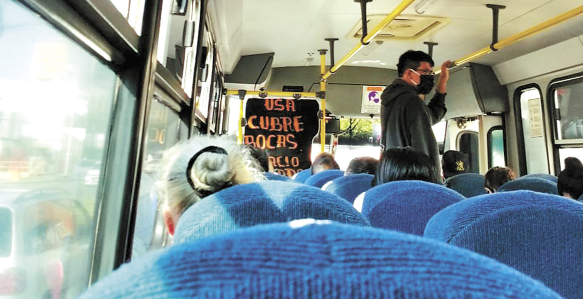 Interior. “Use cubrebocas, espacio cerrado”, está rotulado en la unidad, convocando a los pasajeros a ser conscientes, cuidarse y respetar la salud de los demás.