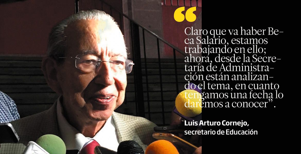 "Claro que va haber Beca Salario, estamos trabajando en ello; ahora, desde la Secretaría de Administración están analizando el tema, en cuanto tengamos una fecha lo daremos a conocer”. Luis Arturo Cornejo, secretario de Educación
