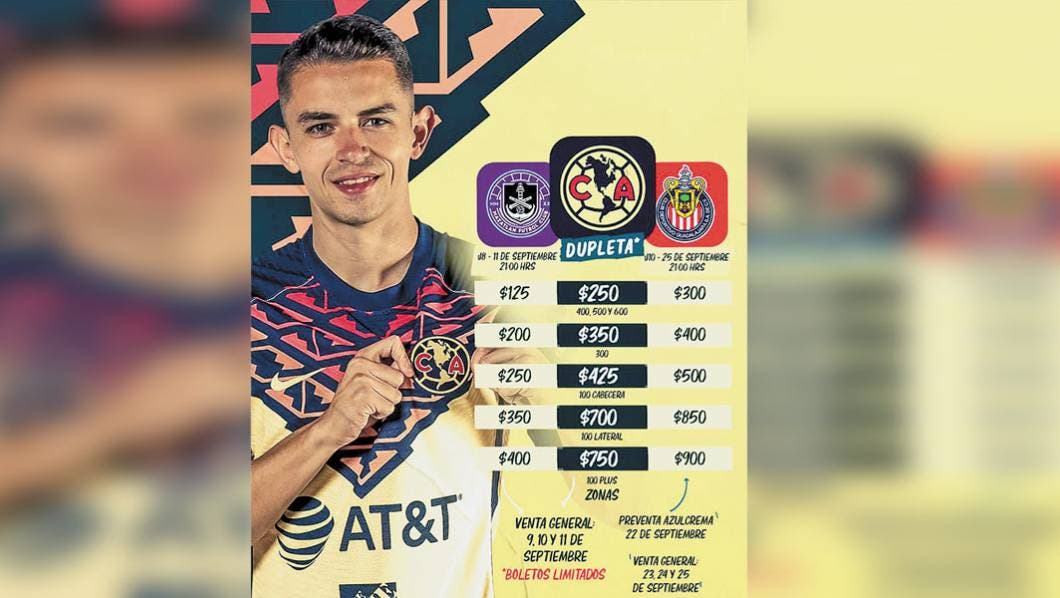 Y es que las Águilas anunciaron en redes que podrán comprar una dupleta de boletos que incluyen los partidos ante Mazatlán (de este sábado) y vs Chivas (el próximo 25 de septiembre).