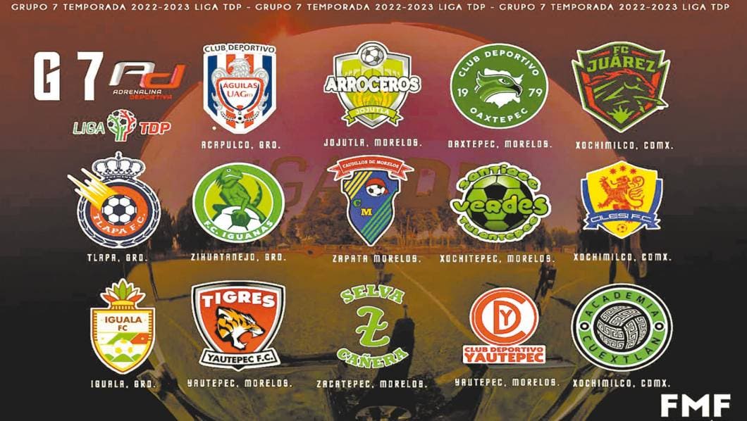 Club Deportivo Yautepec, Tigres Yautepec, Selva Cañera, Caudillos Zapata, CFI Jerrry Galindo, Arroceros Jojutla y Halcones Oaxtepec quedaron sembrados en el Grupo Siete.