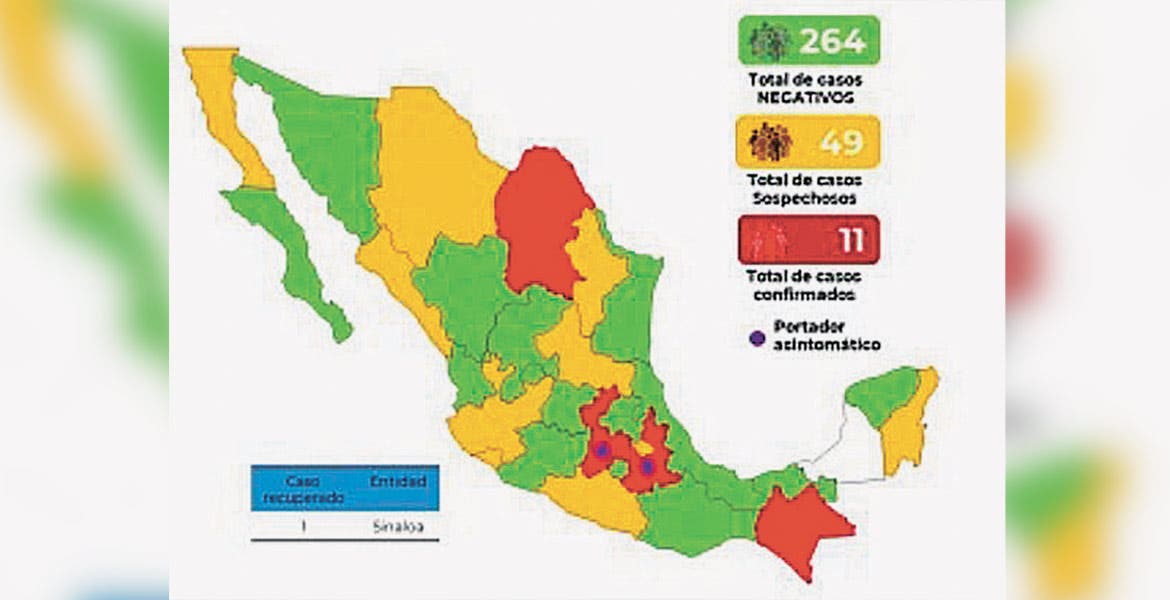 Cuernavaca, MORELOS.- La cifra de casos confirmados del nuevo coronavirus subió de 7 a 11 en México en las últimas horas, informó la Secretaría de Salud anoche en cadena nacional.