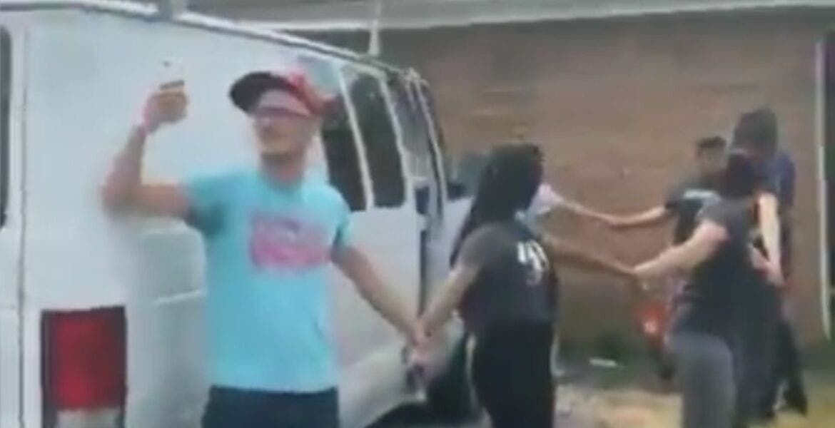 El video de los vecinos agarrados de las manos para formar la cadena humana se hizo viral en redes sociales.