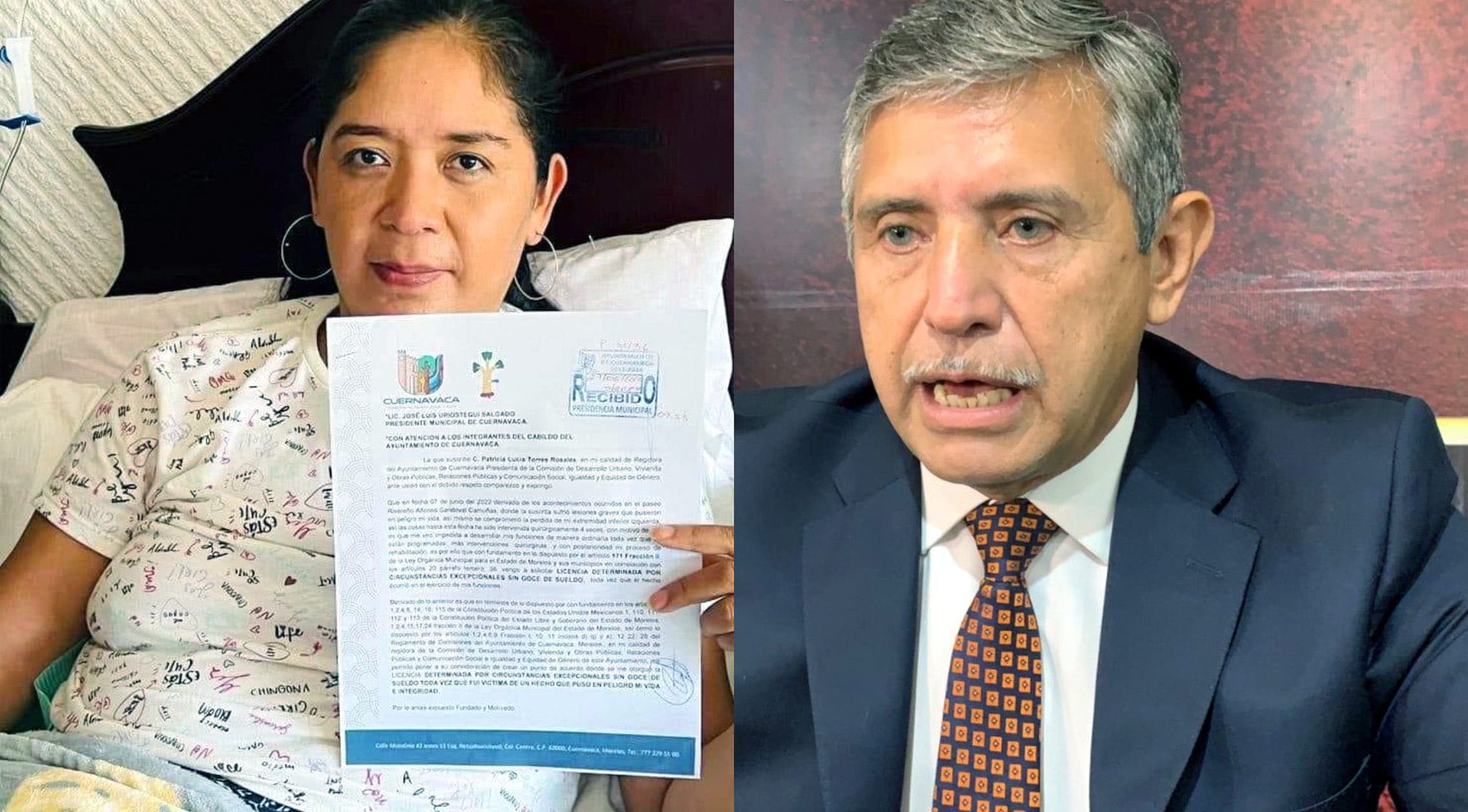 CUERNAVACA, MORELOS.- El gobierno de José Luis Urióstegui Salgado deberá pagar a la regidora por Morena, Patricia Torres Rosales, el salario que ésta dejó de recibir, tras separarse del cargo de manera forzosa por las lesiones graves con las que resultó durante el desplome del puente colgante en el Paseo Rivereño.